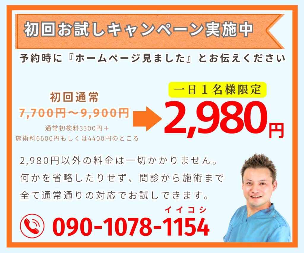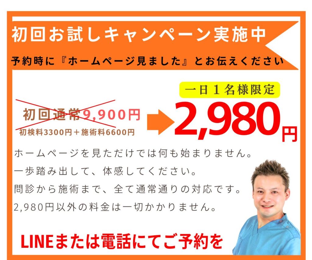 | 施術者 | スタッフが入れ変わり 毎回不安 | 必ず院長が対応 |