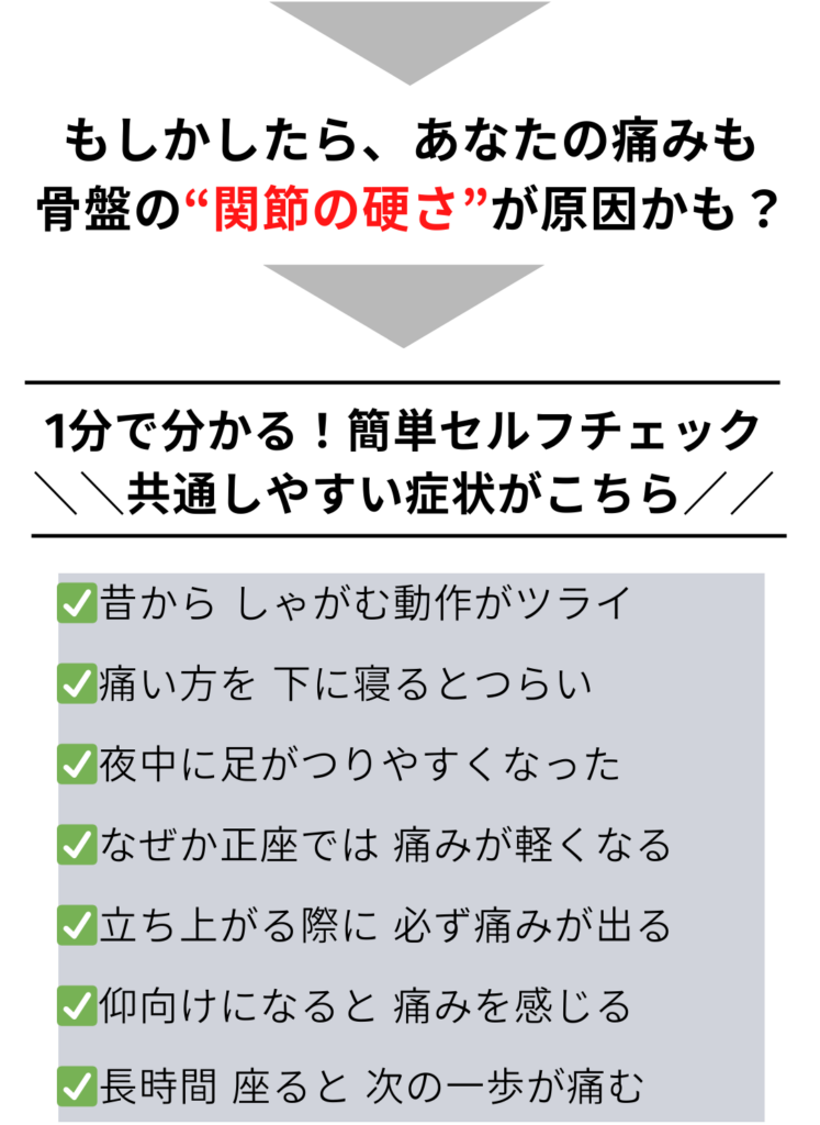 | 施術 | 職場のマニュアル通りで誰にでも同じ施術 | 仙腸関節と脊柱の動きに特化した施術 |