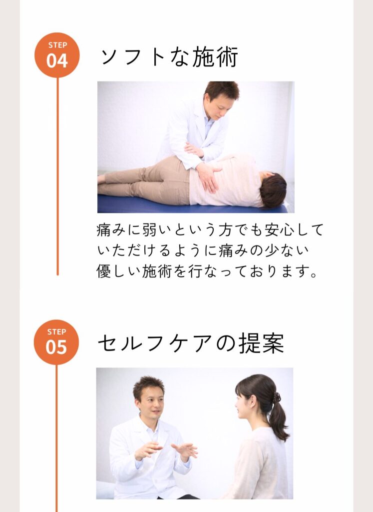 | 方針 | 回数券を買わされて『来週また来て下さい』の繰り返し | 帰宅後のセルフリカバリーや、セルフケアの方法を提案 |